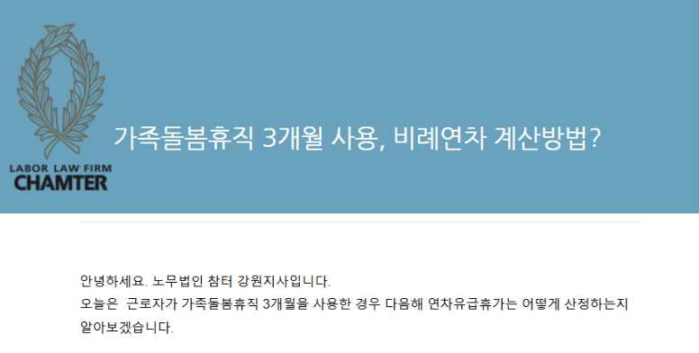 가족돌봄휴직 3개월 사용, 비례연차 계산방법?