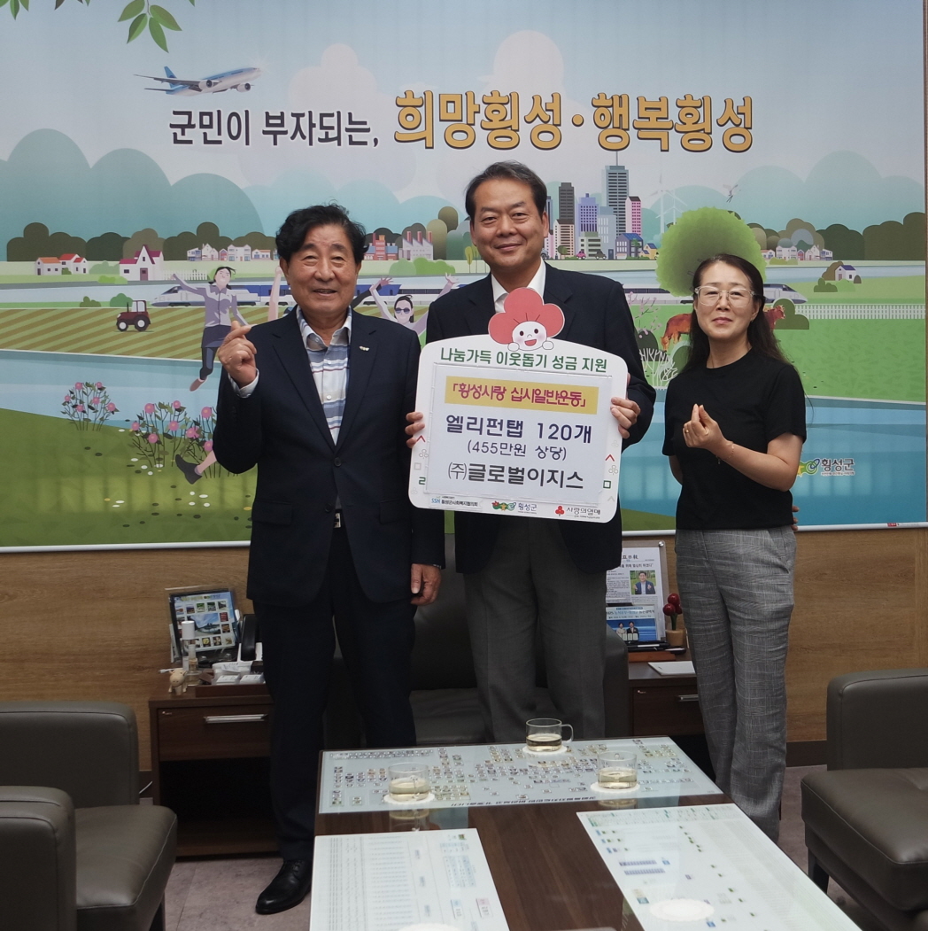 【주식회사 글로벌이지스】님께서 『횡성사랑 십시일반운동』으로 성품을 기탁해주셨습니다. 소중한 후원 진심으로 감사합니다.