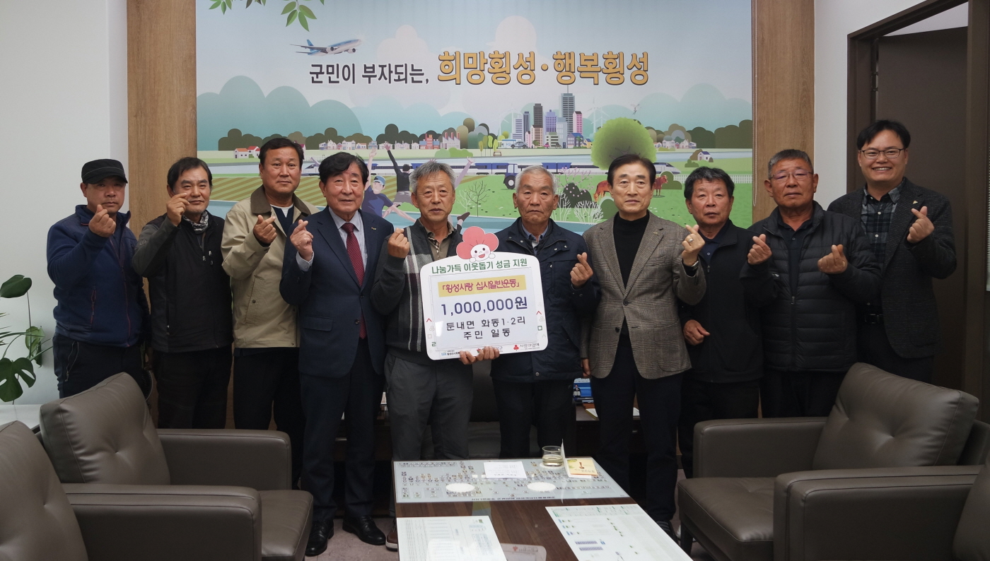 【둔내면 화동 1·2리 주민들】께서 『횡성사랑 십시일반운동』으로 성금을 기탁해주셨습니다. 소중한 후원 진심으로 감사합니다.