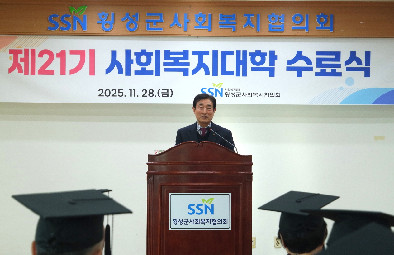 횡성군사회복지협의회(회장 이석원)는 11월 28일(금) 횡성군사회복지협의회관 2층 대강당에서 수강생 30여명이 참석한 가운데 제21기 횡성사회복지대학 수료식을 진행하였습니다.