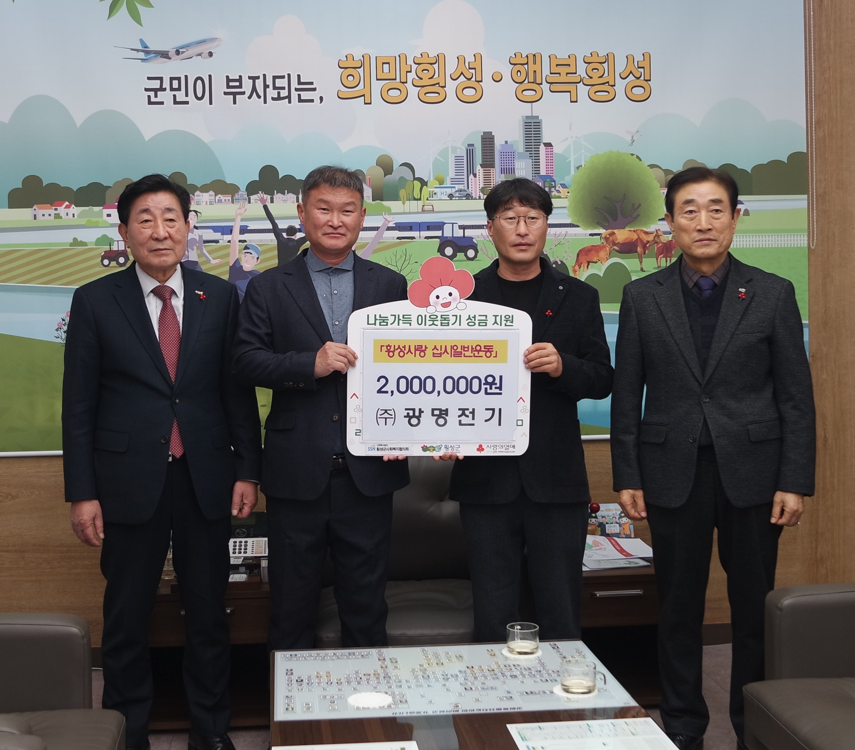 【광명전기】에서 『횡성사랑 십시일반운동』으로 성금을 기탁해주셨습니다. 소중한 후원 진심으로 감사합니다.