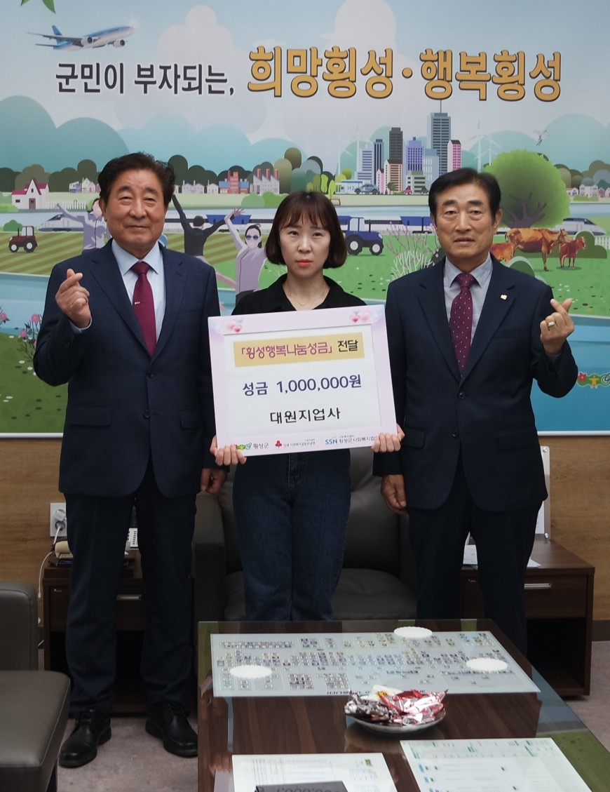 【대원지업사】에서 『횡성행복나눔성금』으로 성금을 기탁해주셨습니다. 소중한 후원 진심으로 감사합니다.