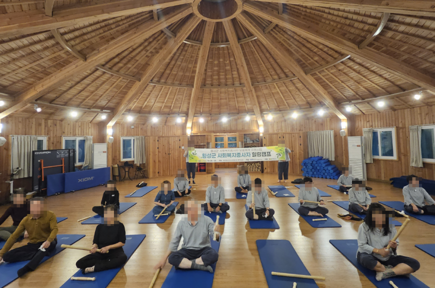 이번 힐링캠프에는 횡성관내 사회복지시설·기관·단체 종사자 20여 명이 참여했으며, 보호체계사업 소개와 종사자 간담회를 시작으로 숲 산책 및 명상, 싱잉볼 뮤직테라피, 가리산레포츠파크 플라잉짚 체험 등 다양한 프로그램이 진행됐습니다.