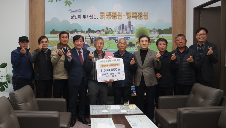 【둔내면 화동 1·2리 주민들】께서 『횡성사랑 십시일반운동』으로 성금을 기탁해주셨습니다. 소중한 후원 진심으로 감사합니다.