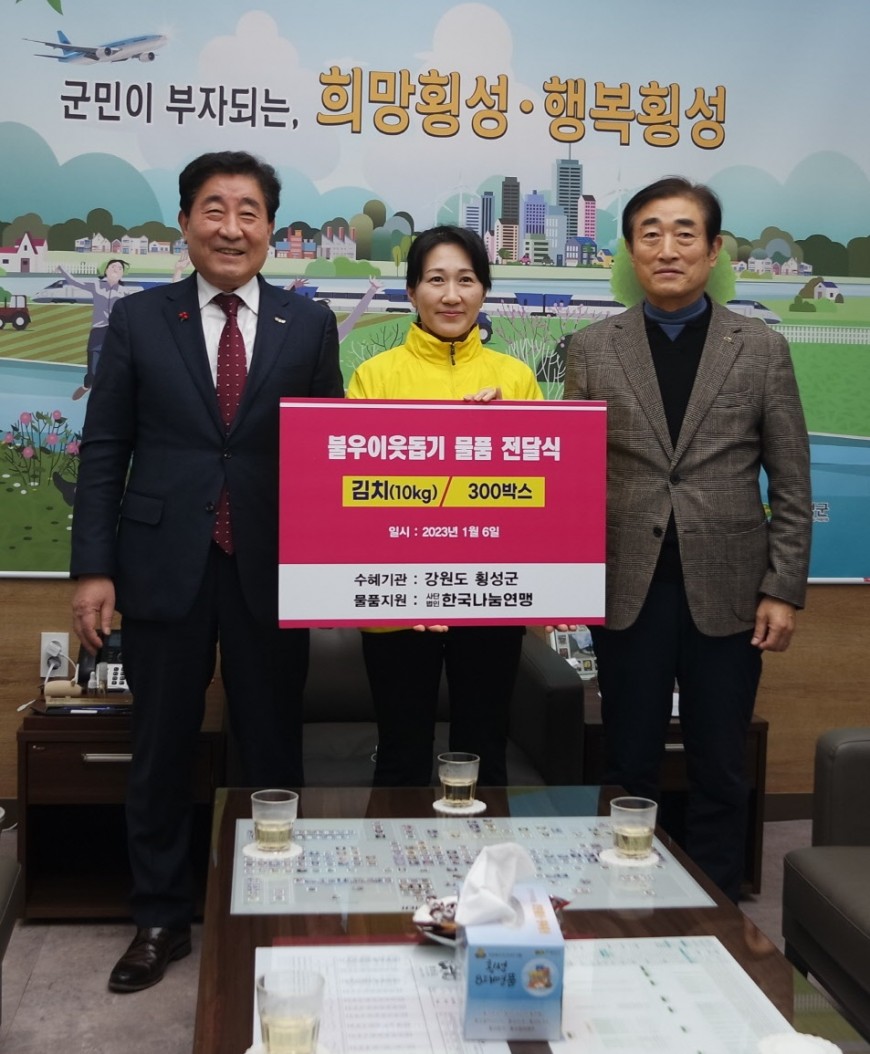 【사)한국나눔연맹】에서 희망2023 나눔캠페인 『횡성행복나눔성금』으로 성품을 기탁해주셨습니다. 소중한 후원 진심으로 감사합니다.