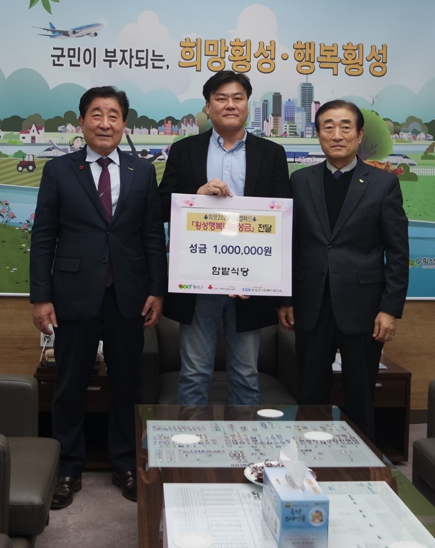 【함밭식당】에서 희망2023 나눔캠페인 『횡성행복나눔성금』으로 성금을 기탁해주셨습니다. 소중한 후원 진심으로 감사합니다.