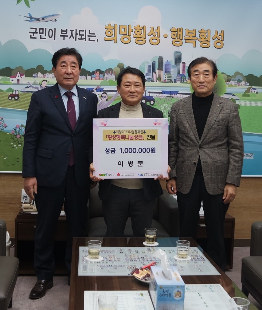 【이병문】님께서 희망2023 나눔캠페인 『횡성행복나눔성금』으로 성금을 기탁해주셨습니다. 소중한 후원 진심으로 감사합니다.