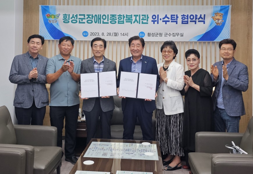 사회복지법인 횡성군사회복지협의회(회장 이석원)는 횡성군장애인종합복지관 수탁법인으로 선정되어 금일 횡성군(군수 김명기)을 방문하여 협약식을 가졌습니다.